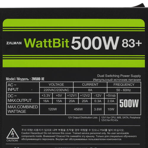 Блок питания 500Вт ZALMAN (ZM500-XEII) ATX12V v2.3, Dual Forward Switching, 12cm Fan, Retail 80 PLUS