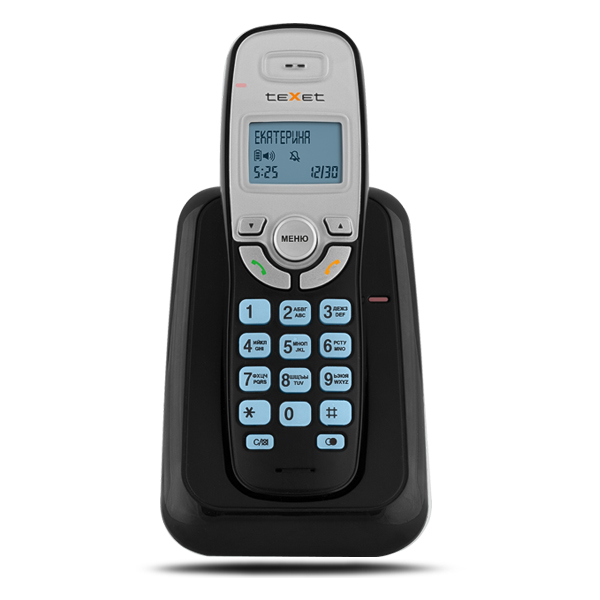 Телефон беспроводной teXet TX-D6905A, установка : настольная/ настенная; DECT (1880-1900 МГц); ЖК дисплей : поиск трубки : спикерфон, телефонная книга : 50 номеров; Caller ID, АОН : звонок : 10 мелодий; тип аккумулятора : Ni-MH; черный/серый.