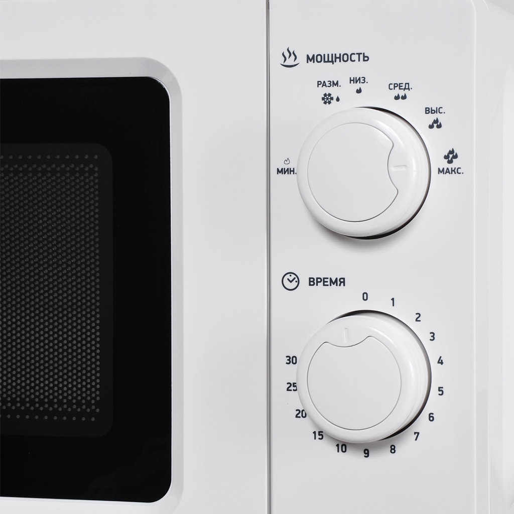 Микроволновая печь Starwind SMW3020 Цвет белый, объем 20л, мощность микроволн 700Вт, внутреннее покрытие эмаль, управление электронное, диаметр поддона 24,5см