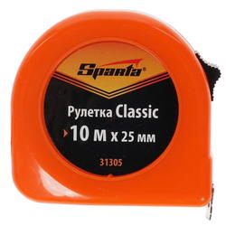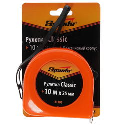 Рулетка Sparta Classic 10м х 25мм, пластиковый корпус, 31305