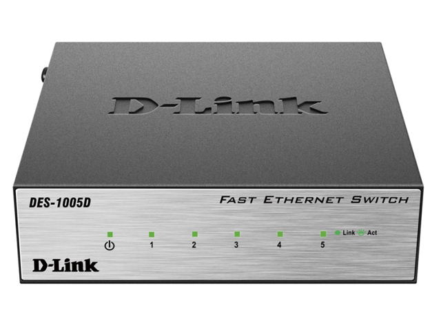 Коммутатор 5TP D-Link DES-1005D/O2A/O2B Тип неуправляемый, интерфейсы 5 портов 10/100Мбит/с, коммутационная матрица 1Гбит/с, материал корпуса металл, блок питания внешний
