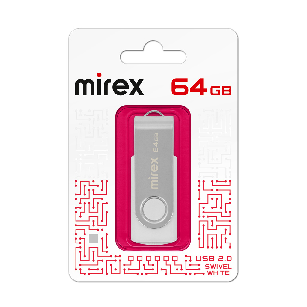 Флеш диск 64GB USB 2.0 Mirex SWIVEL WHITE