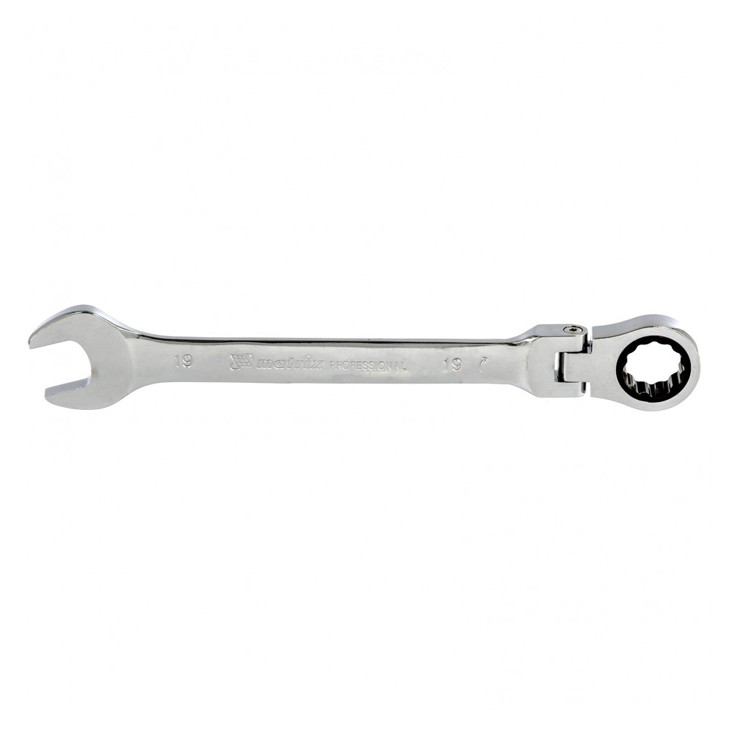 Ключ комбинированный трещоточный 19мм, CrV, шарнирный, зерк.хром 14871