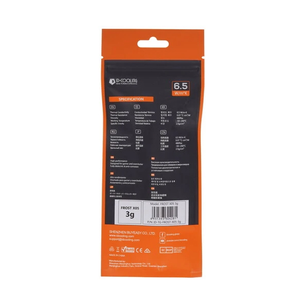 Термопаста для процессоров ID-Cooling FROST X05 3g 6.5Вт/(м-К) шприц 3гр. FROST X05 3G