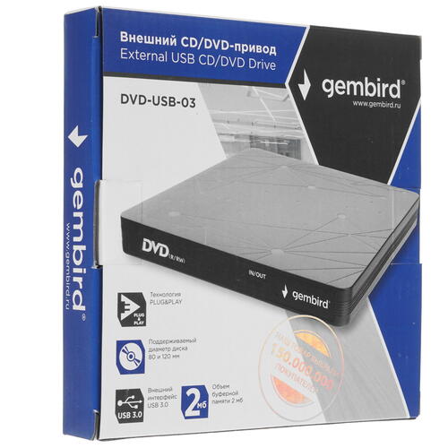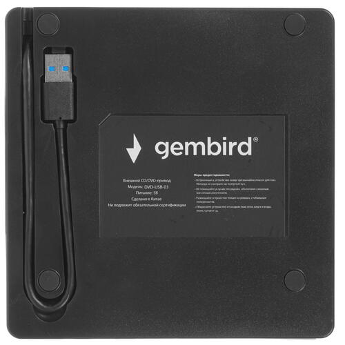 Привод внешний DVD+/-RW Gembird DVD-USB-03 пластик, черный USB 3.0