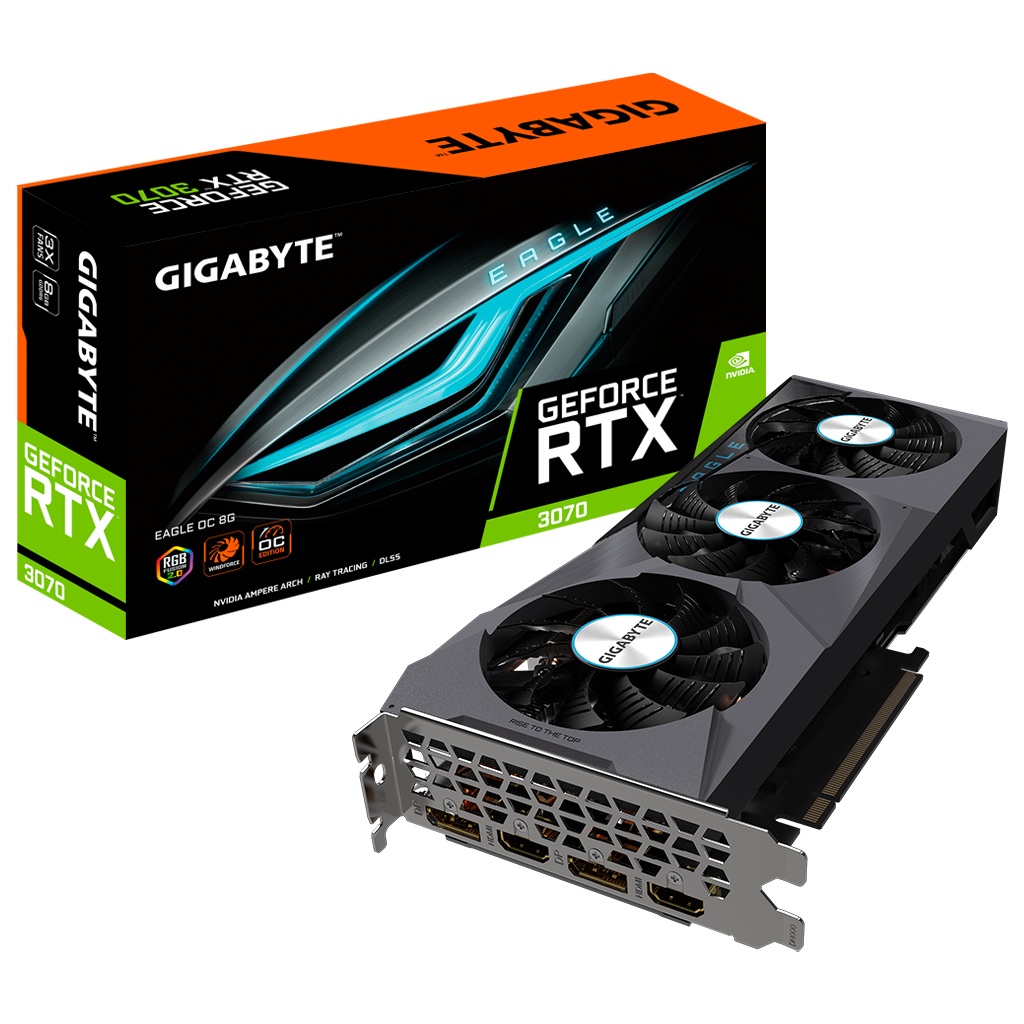 Видеокарта PCI-E 8Gb GeForce RTX3070 Gigabyte RTX3070 EAGLE OC 8GB GDDR6 256bit 2xHDMI 2xDP LHR RTL