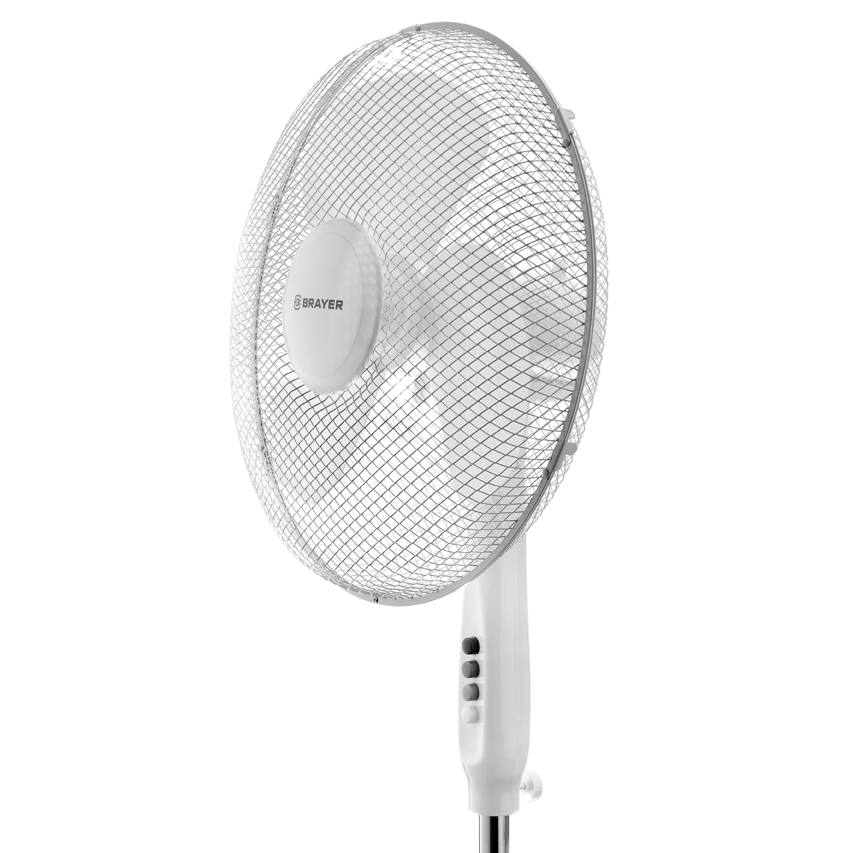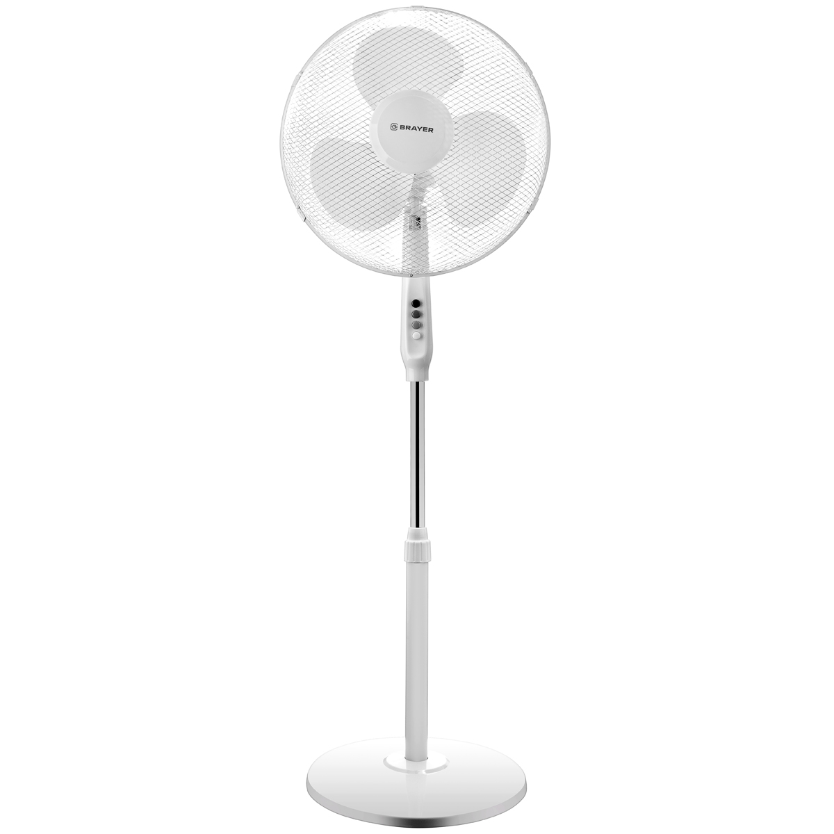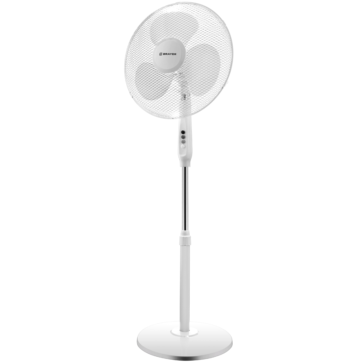 Вентилятор напольный BRAYER 4961BR-WH , 3 скор; 3 лопас;регул.уров.накл,40 Вт.основание 60см, белый