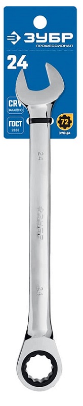 Ключ комбинированный трещоточный 24мм, Зубр 27074-24