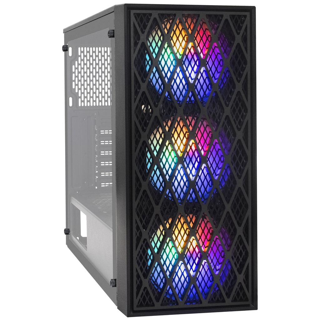 Корпус Exegate EVO-8243 (ATX, без БП, 2*USB+1*USB3.0, черный, 3 вент. с RGB подсветкой, боковая панель - закаленное стекло)