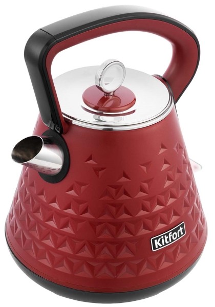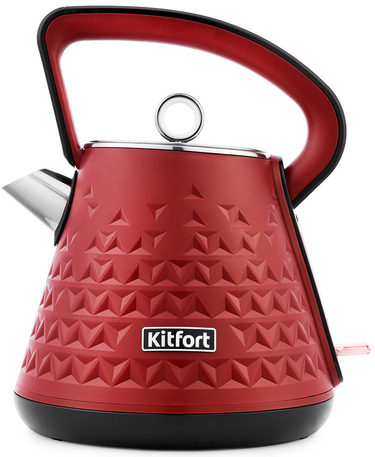 Чайник Kitfort КТ-693-2 Цвет красный, объем 1.5л., мощность 2200Вт, тип нагревательного элемента закрытая спираль, автоматическое отключение при отсутствии воды, двойные стенки, материал корпуса металл/пластик