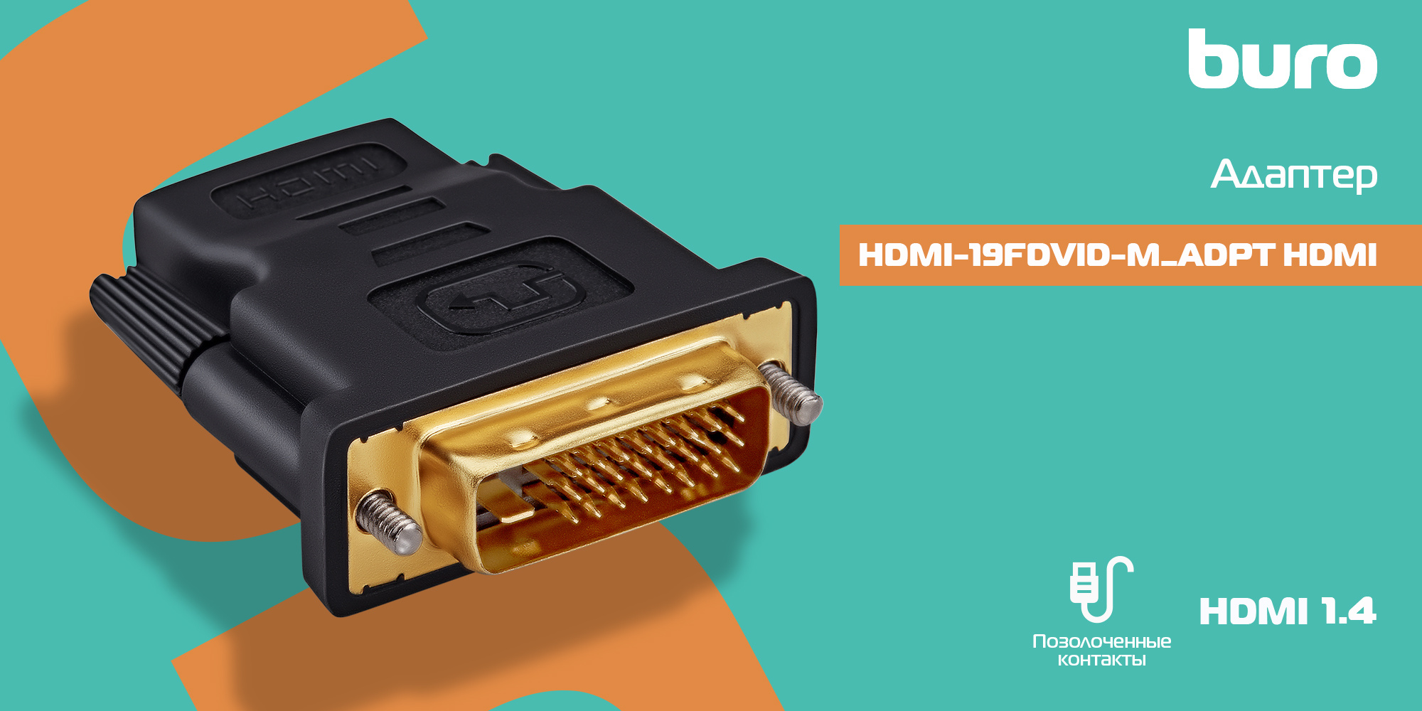 Переходник DVI-HDMI Buro черный, коннекторы HDMI (f)/DVI-D (m), Позолоченные контакты (HDMI-19FDVID-M_ADPT)