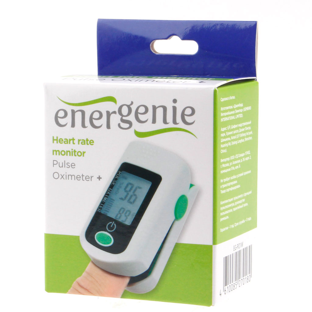 Пульсометр с функцией пульсоксиметра "Energenie" EG-PO1W, белый с зеленым