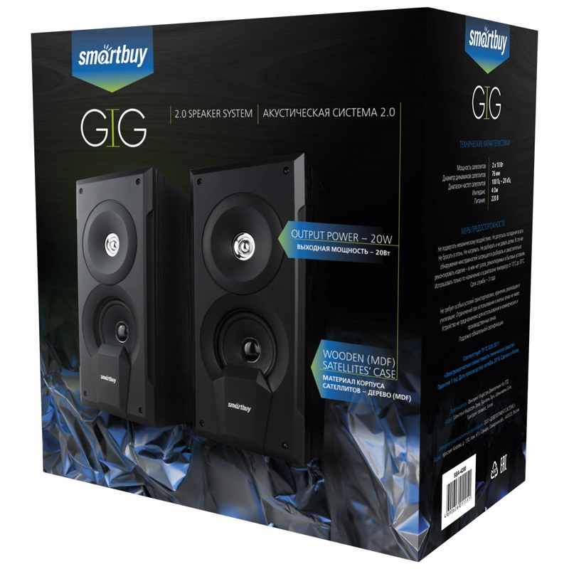 Колонки SmartBuy 2.0 GIG, мощность 20 Вт, корпус МДФ, 220В, черная (арт.SBA-4200)