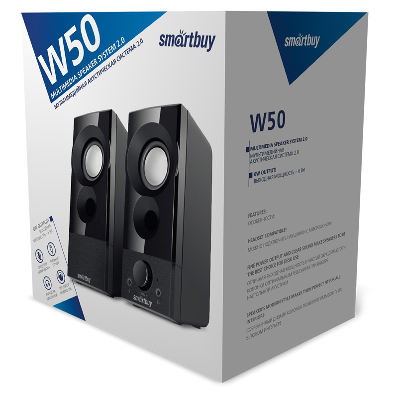 Колонки SmartBuy 2.0 W50, 6Вт, динамики 50мм, USB (SBA-4900)