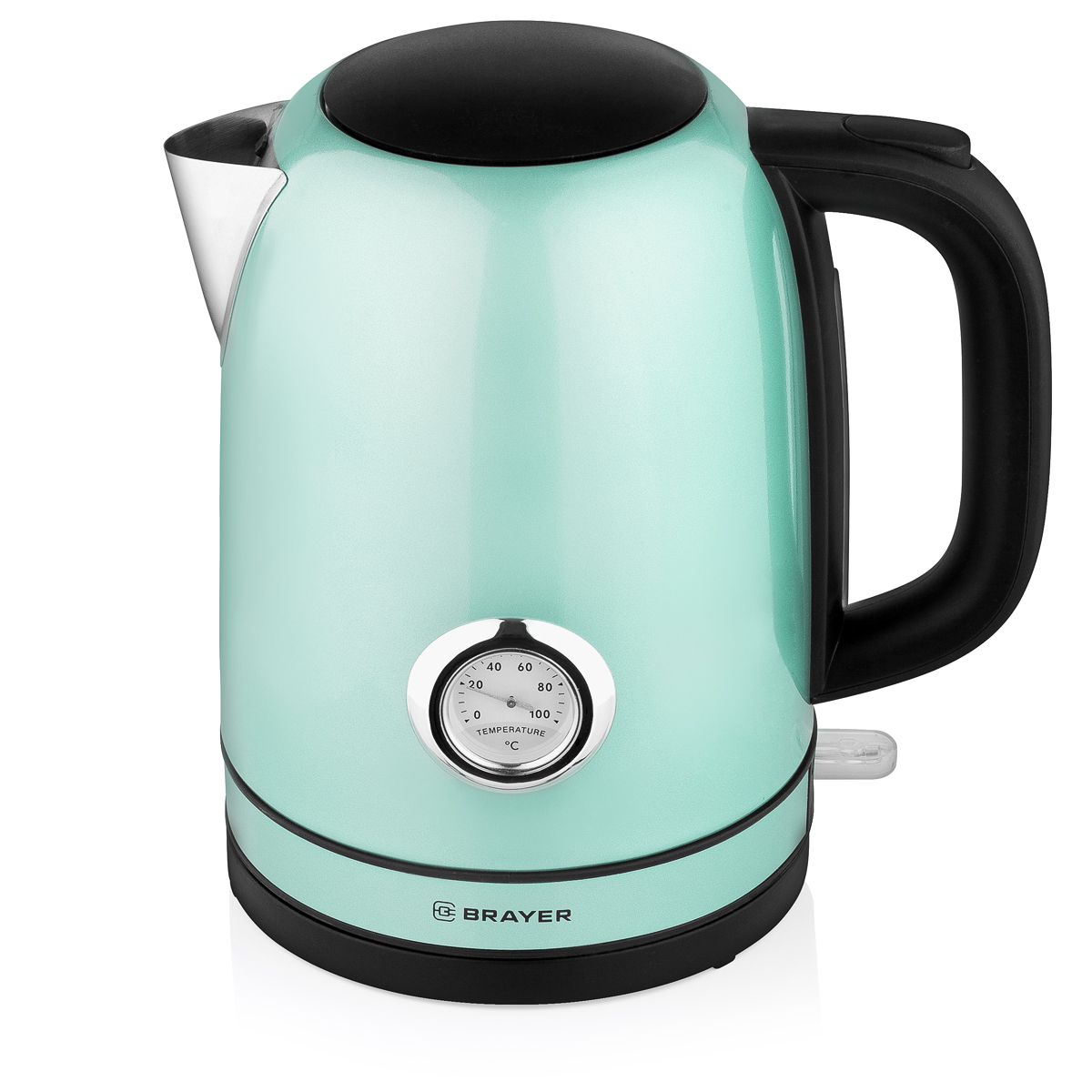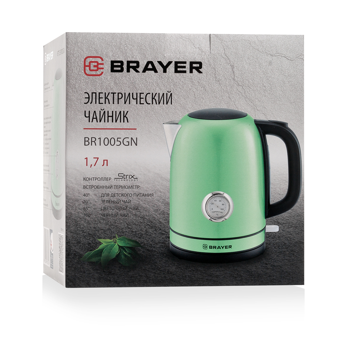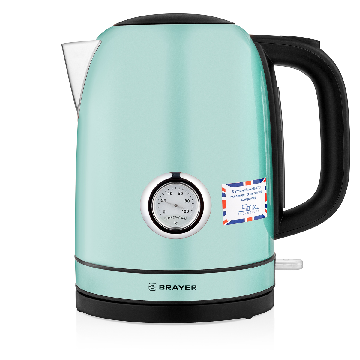 Чайник BRAYER 1005BR-YE Цвет , объем 1.7л, мощность 2200Вт, тип нагревательного элемента закрытая спираль, автоматическое отключение при отсутствии воды, термометр, контроллер STRIX, материал корпуса нержавеющая сталь