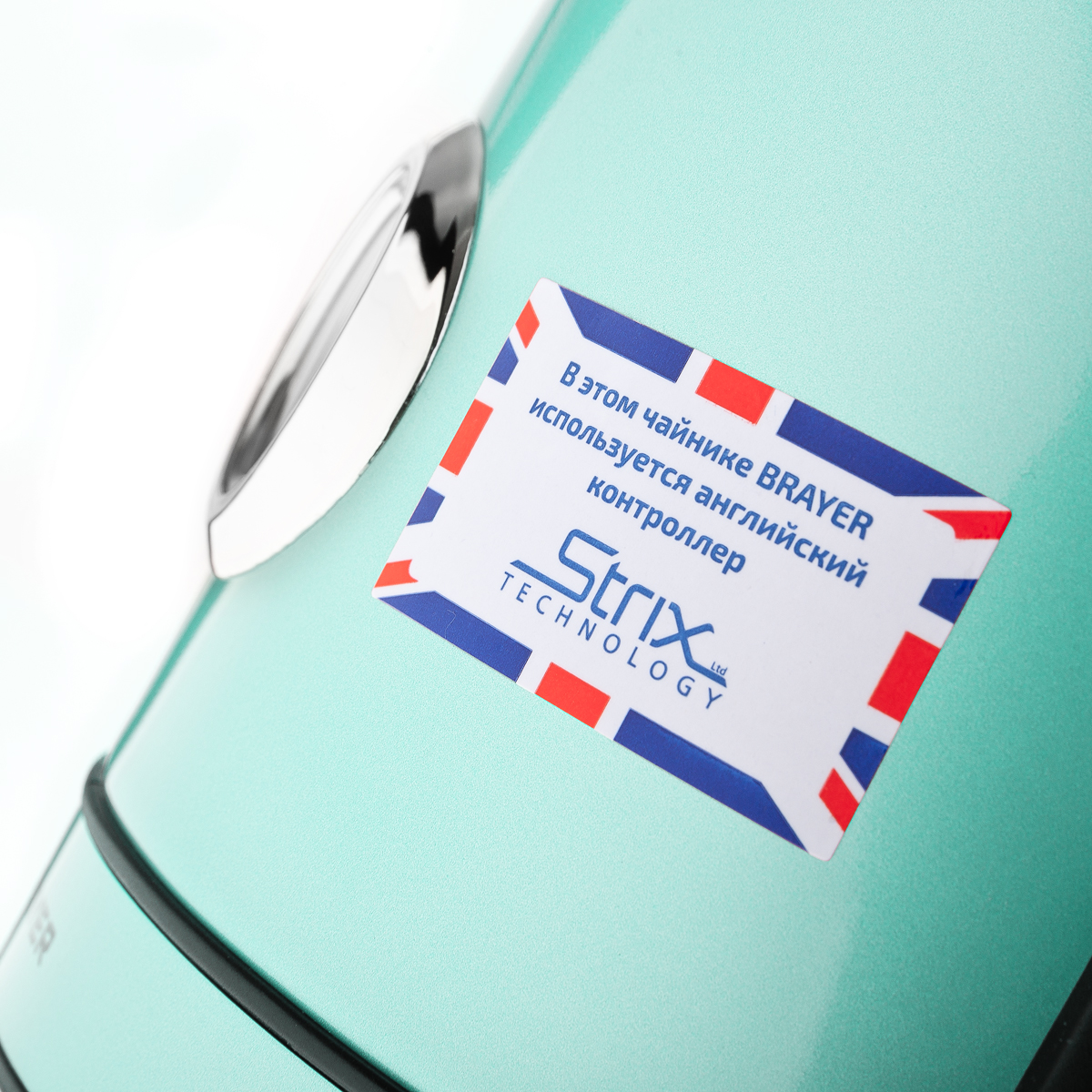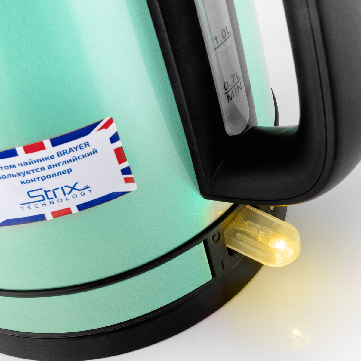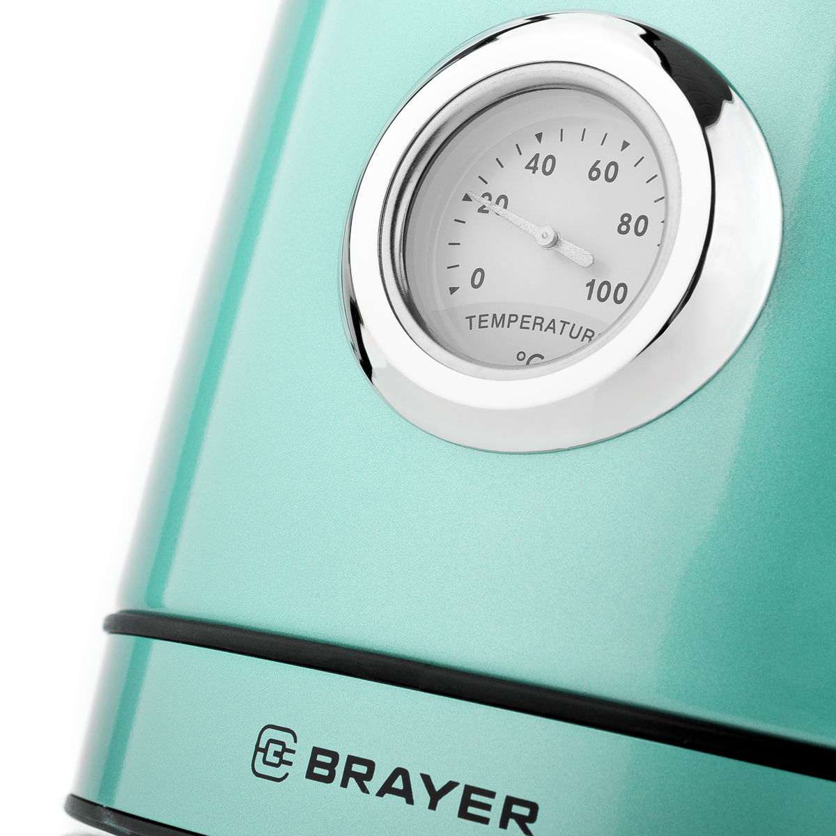 Чайник BRAYER 1005BR-YE Цвет , объем 1.7л, мощность 2200Вт, тип нагревательного элемента закрытая спираль, автоматическое отключение при отсутствии воды, термометр, контроллер STRIX, материал корпуса нержавеющая сталь