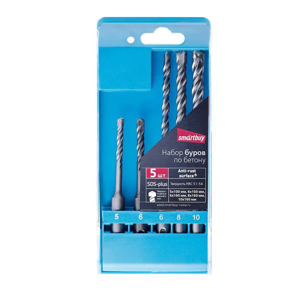 Набор буров Smartbuy по бетону SDS-plus,с твердоспл.нак.,100мм:D5 ;D6;160мм: D6;D8;D10 кейс