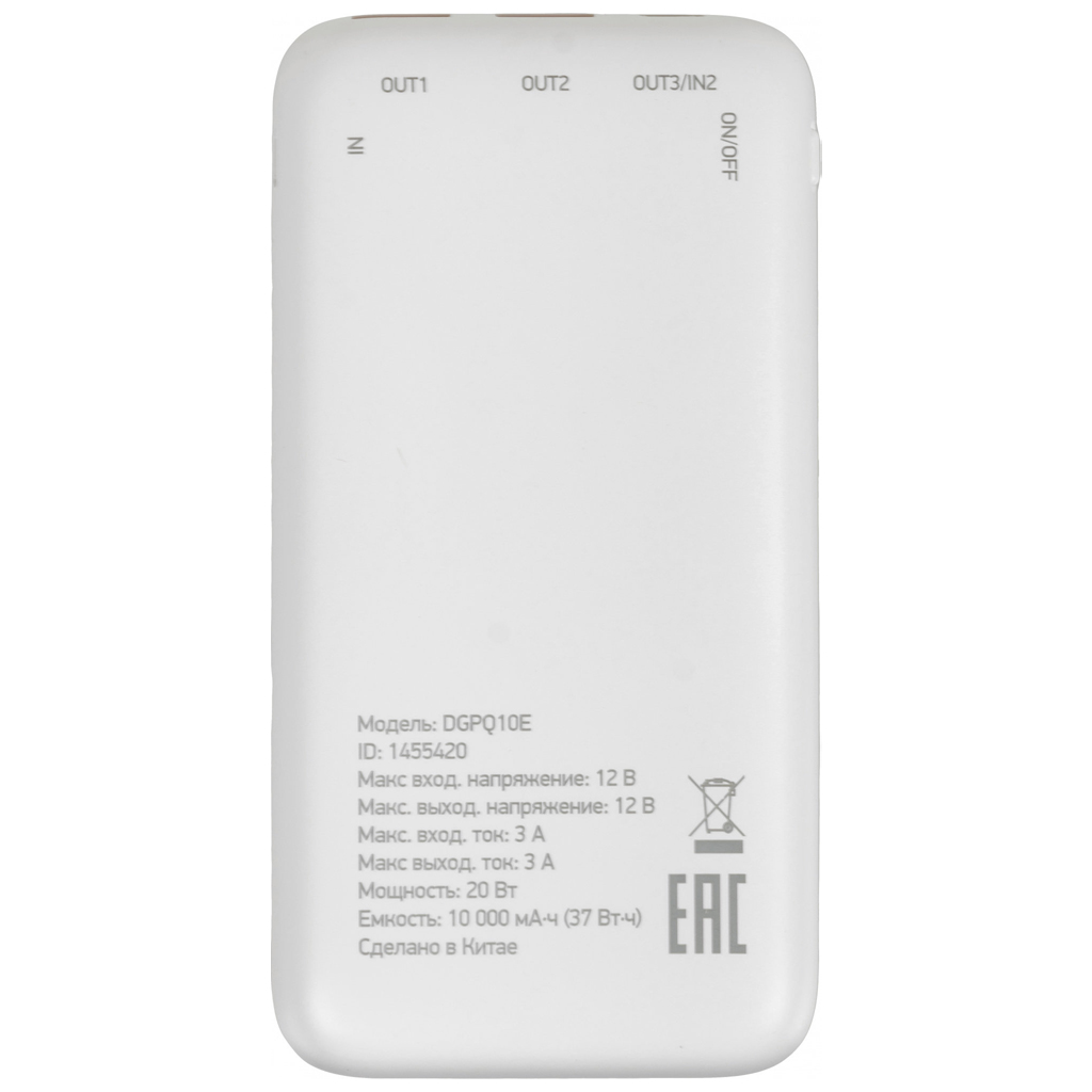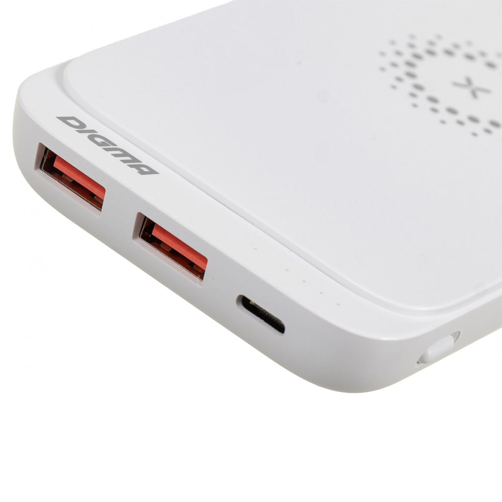 Мобильный аккумулятор Digma DGPQ10E 10000mAh 3A QC PD 20W 2xUSB беспроводная зарядка белый (DGPQ10E2 DGPQ10E20PWT