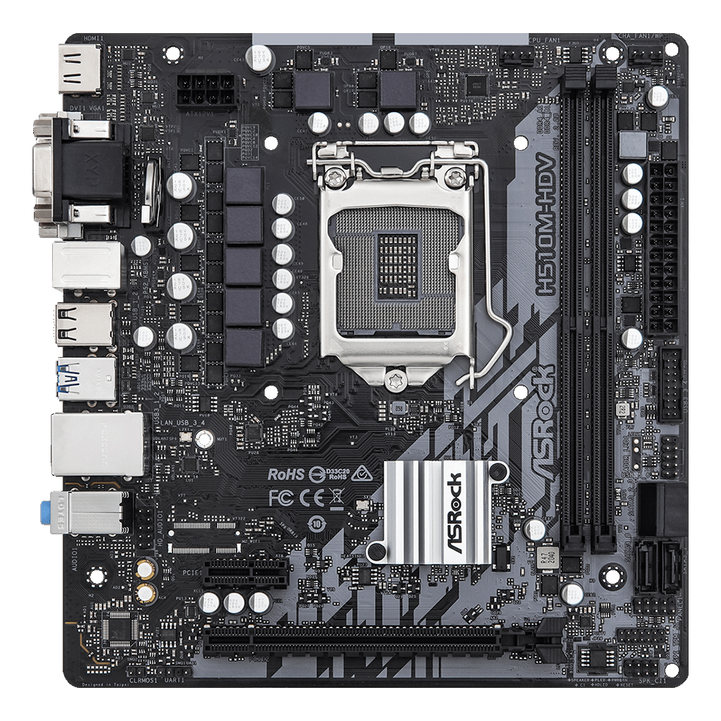 Материнская плата Socket-1200 Asrock H510M-HDV R2.0 Soc-1200 Intel H510 2xDDR4 mATX AC`97 8ch(7.1) GbLAN+VGA+DVI+HDMI