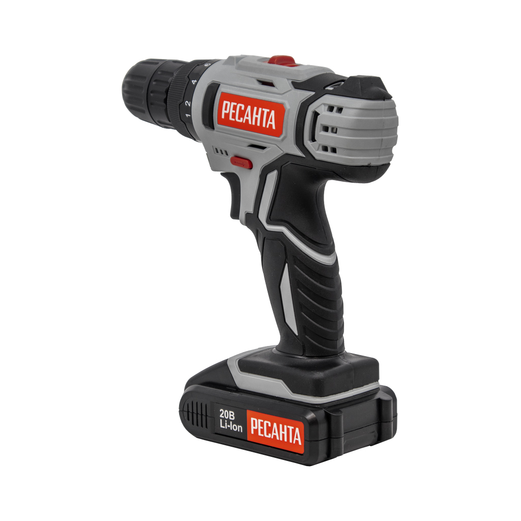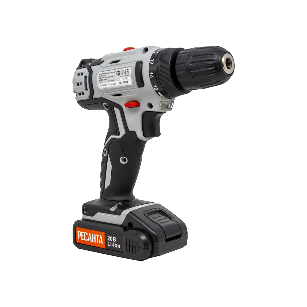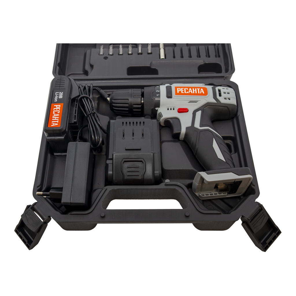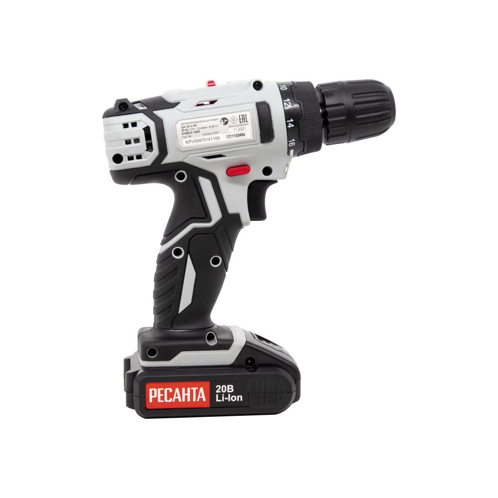 Дрель-шуруповерт Ресанта ДА-20-2ЛК аккум. патрон:0.8-10мм быстрозажимной, 20В, 55/27Нм, 400-1400об/мин, 2х2Ач Li-ion, сталь-12мм, дерево-30мм, 2 скорости, подсветка, реверс, защита от перегрузки, блокировка шпинделя, 1,5кг (кейс) 75/14/11