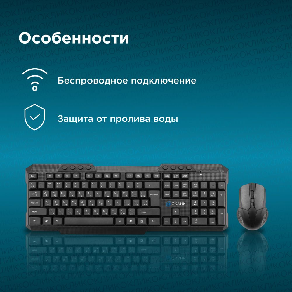 Клавиатура + мышь беспроводная Oklick 205MK клав:черный мышь:черный USB Multimedia