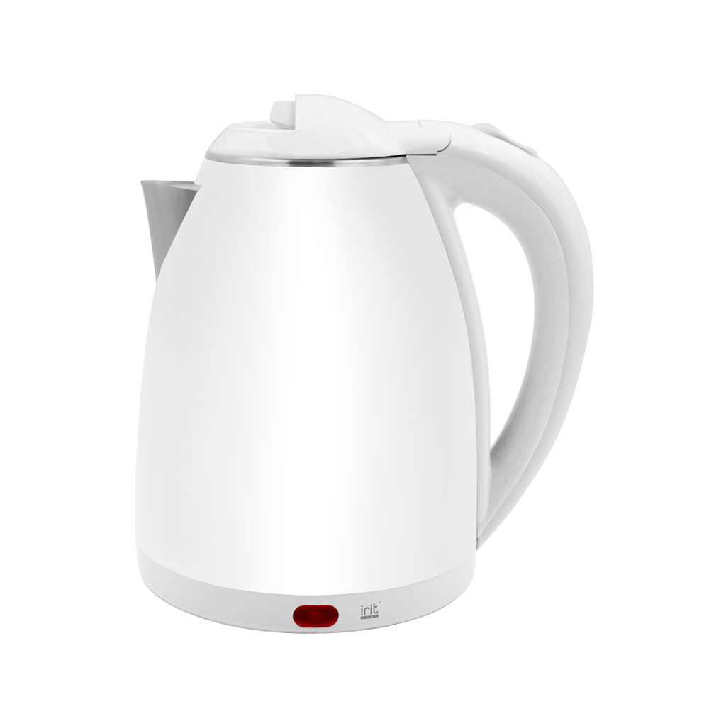 Чайник Irit IR-1303 объем : 1.8 л; мощность : 1500 Вт; нагревательный элемент : закрытый; фильтры : металлический; автоотключение при отсутствии воды, отделение для шнура, вращение на 360 гр. материал корпуса : металл; пластик; цвет корпуса : белый.