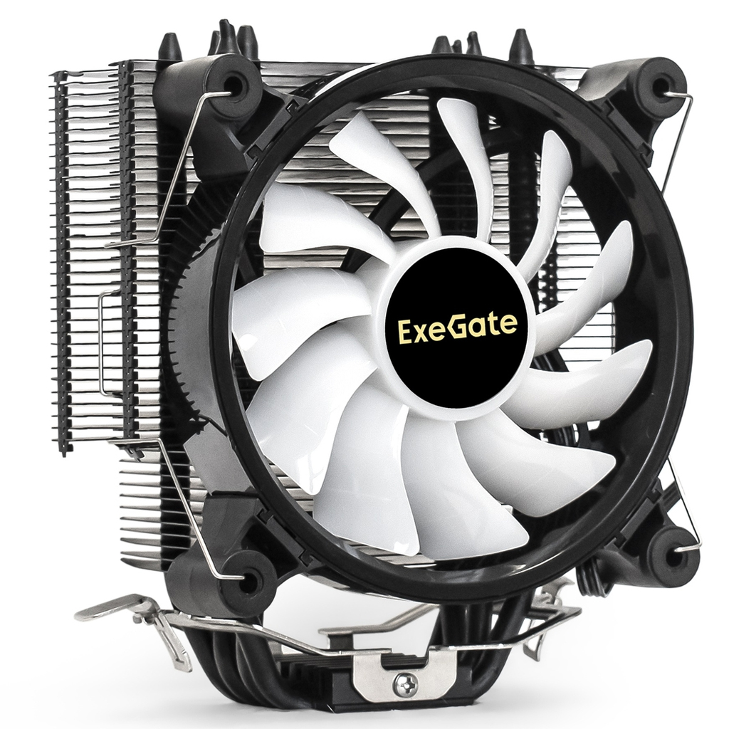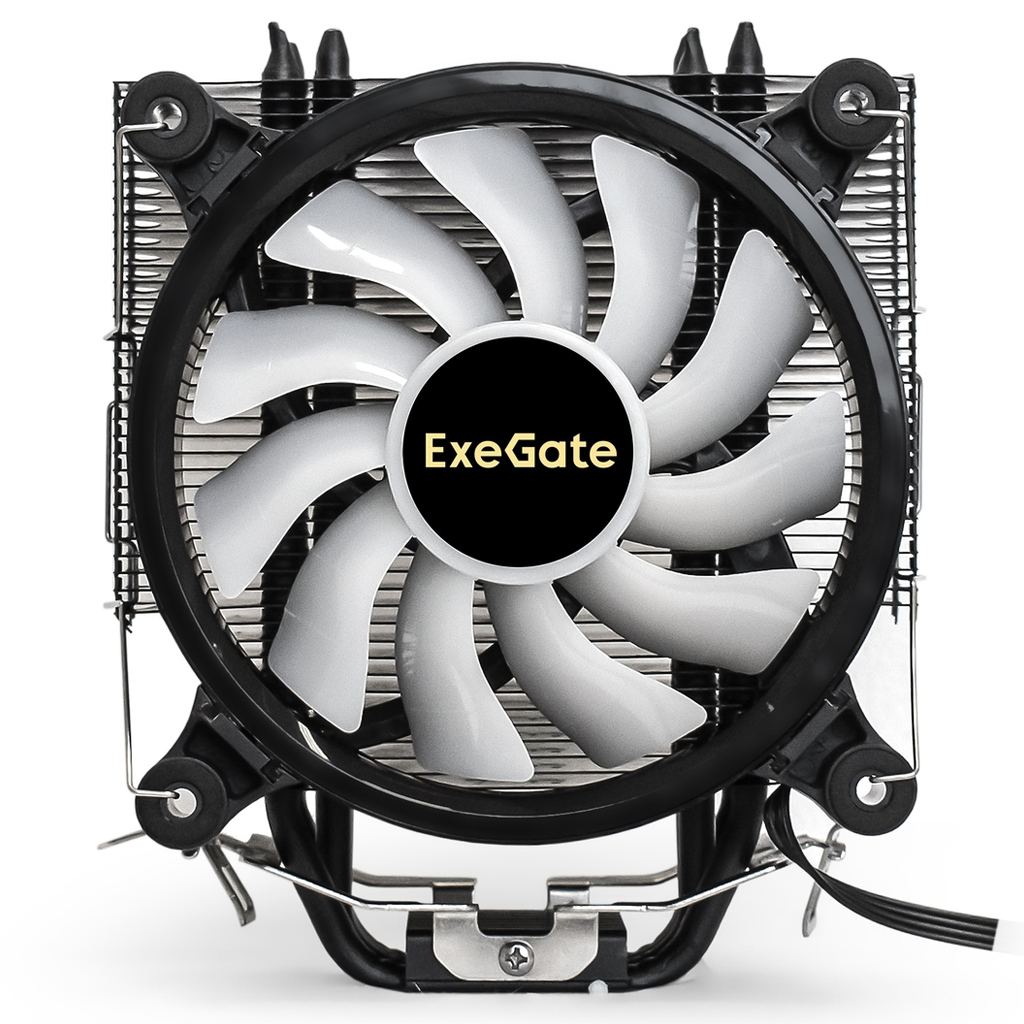 Вентилятор проц. Socket: 1700/1200/115x/775/AM4/AM3+ ExeGate Dark Magic EXX400V2-PWM.RGB TDP: 140Вт., PWM, 4pin, об/м: 1200-2100, Уровень шума: 11-24db, Тип: башенный 4 трубки, Размер вентилятора: 120x25мм, Габариты:80x128x155мм, Подсветка: RGB