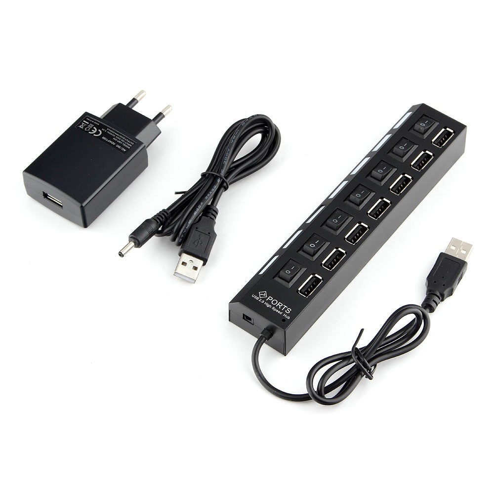 Концентратор USB 2.0 7 портов, GEMBIRD UHB-U2P7-02 с подсветкой и выключателями, 7 портов, кабель 55см + блок питания, блистер