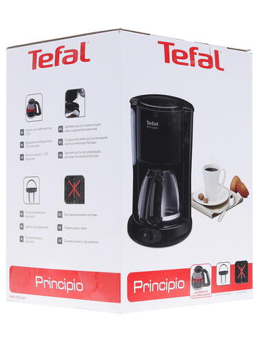 Кофеварка капельная Tefal CM 261838 мощность : 1000 Вт; объем резервуара для воды : 1.25 л; объем резервуара для воды : 15 чашек, тип используемого кофе : молотый; противокапельная система, поддержание температуры готового напитка.