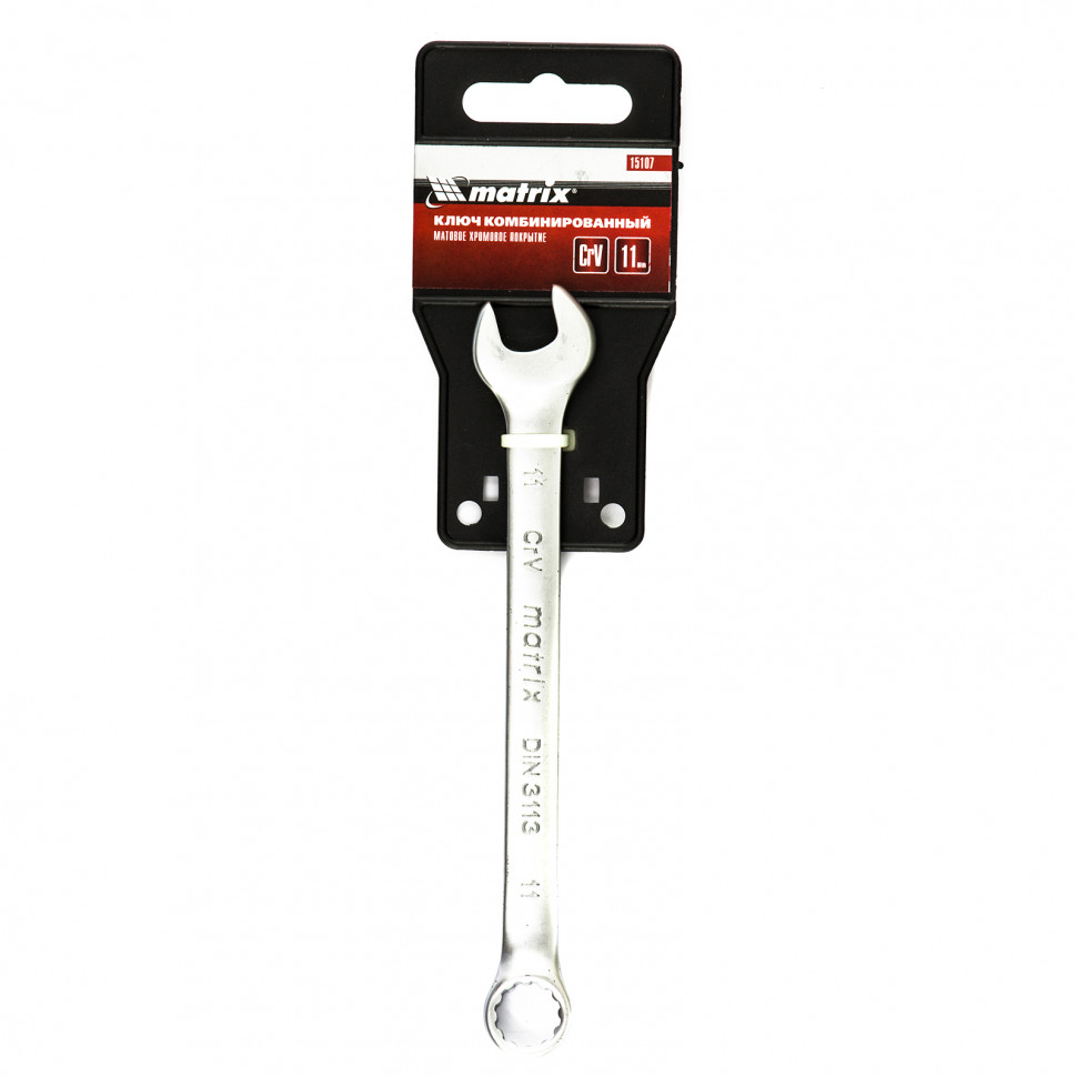 Ключ комбинированный 11мм, CrV, матовый хром 15107