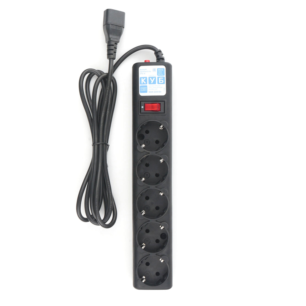 Сетевой фильтр 5 розеток 1.9 м Power Cube, черный для подкл. к UPS, 10А/2,2кВт