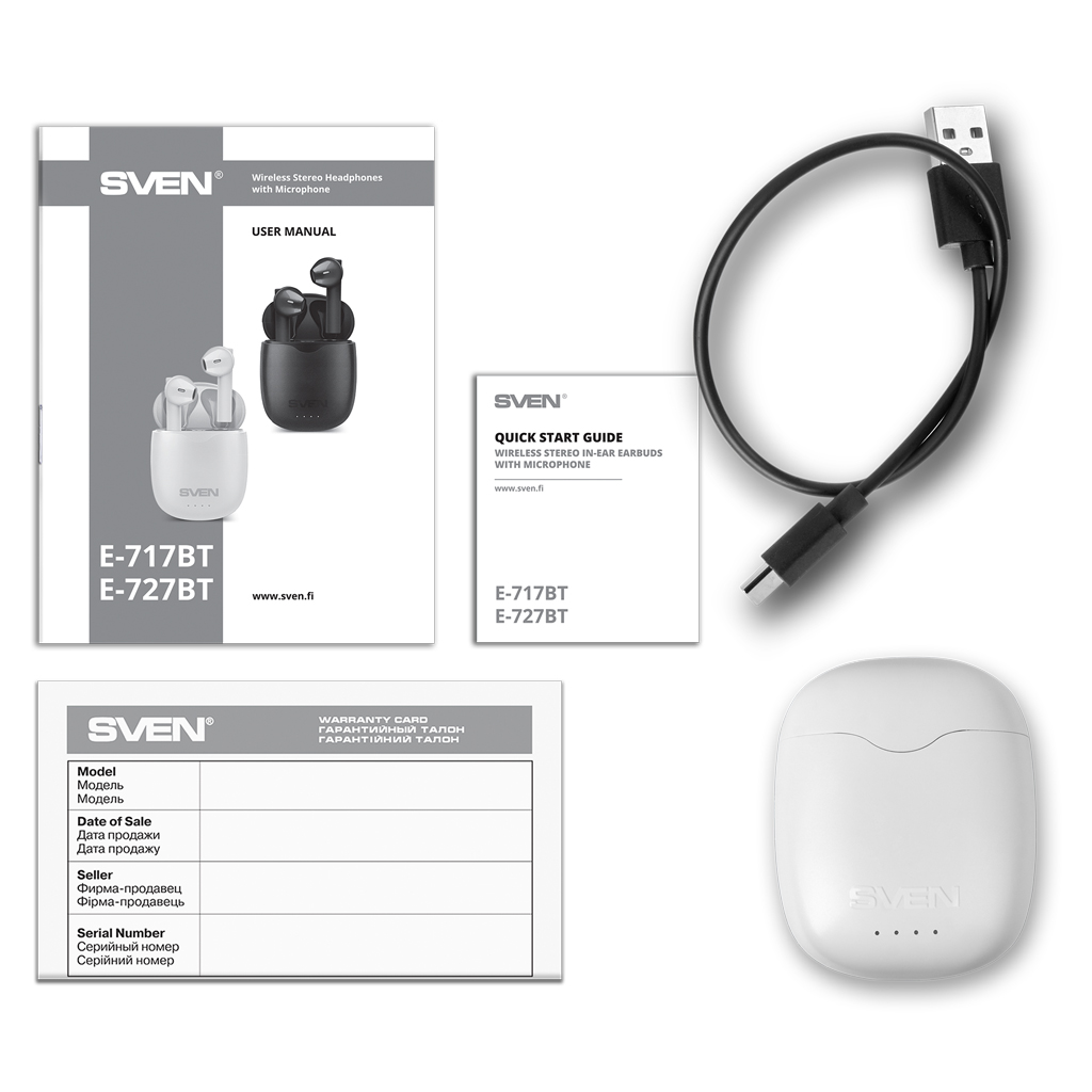 Наушники - вкладыши Bluetooth TWS Sven E-727BT, белый магнитный зарядный кейс, внутриканальные ,с микрофоном.