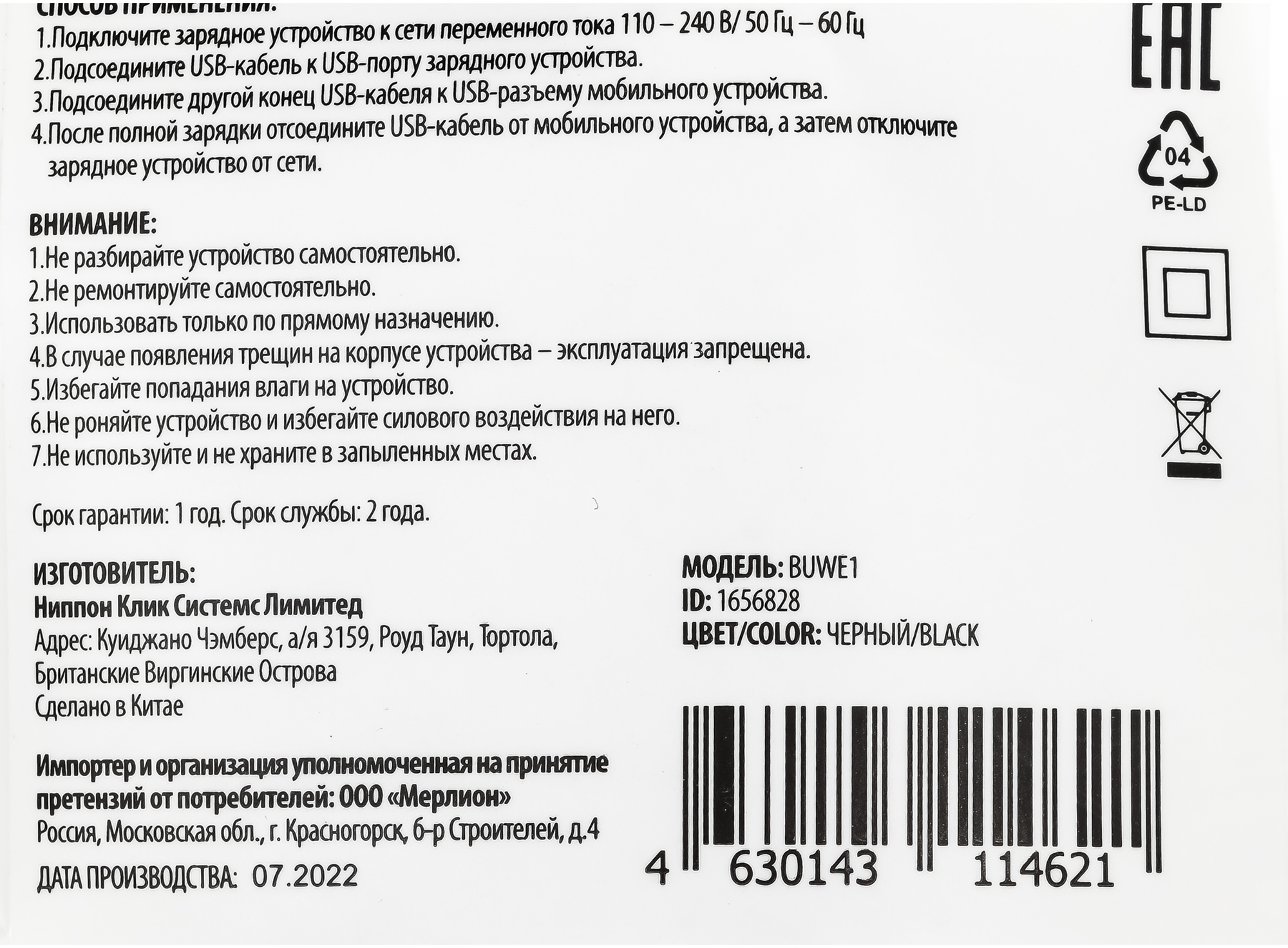 Зарядное устройство сетевое 2хUSB 2.1A Buro BUWE1 10.5W черный (BUWE10S200BK)