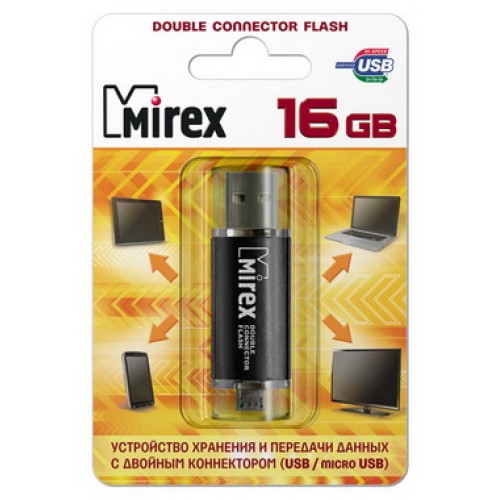 Флеш диск 16GB USB 2.0 Mirex SMART BLACK USB/microUSB с двойным разъёмом