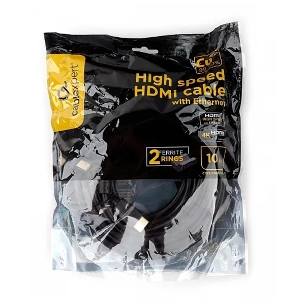 Кабель HDMI Cablexpert CCF2-HDMI4-10, 3м, v2.0, 19M/19M, черный, позол.разъемы, экран, 2 ферр кольца, пакет