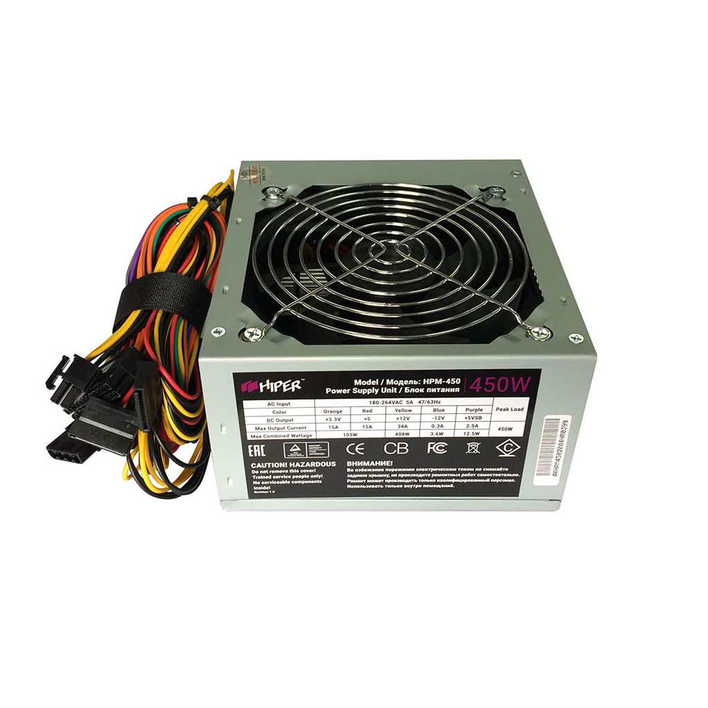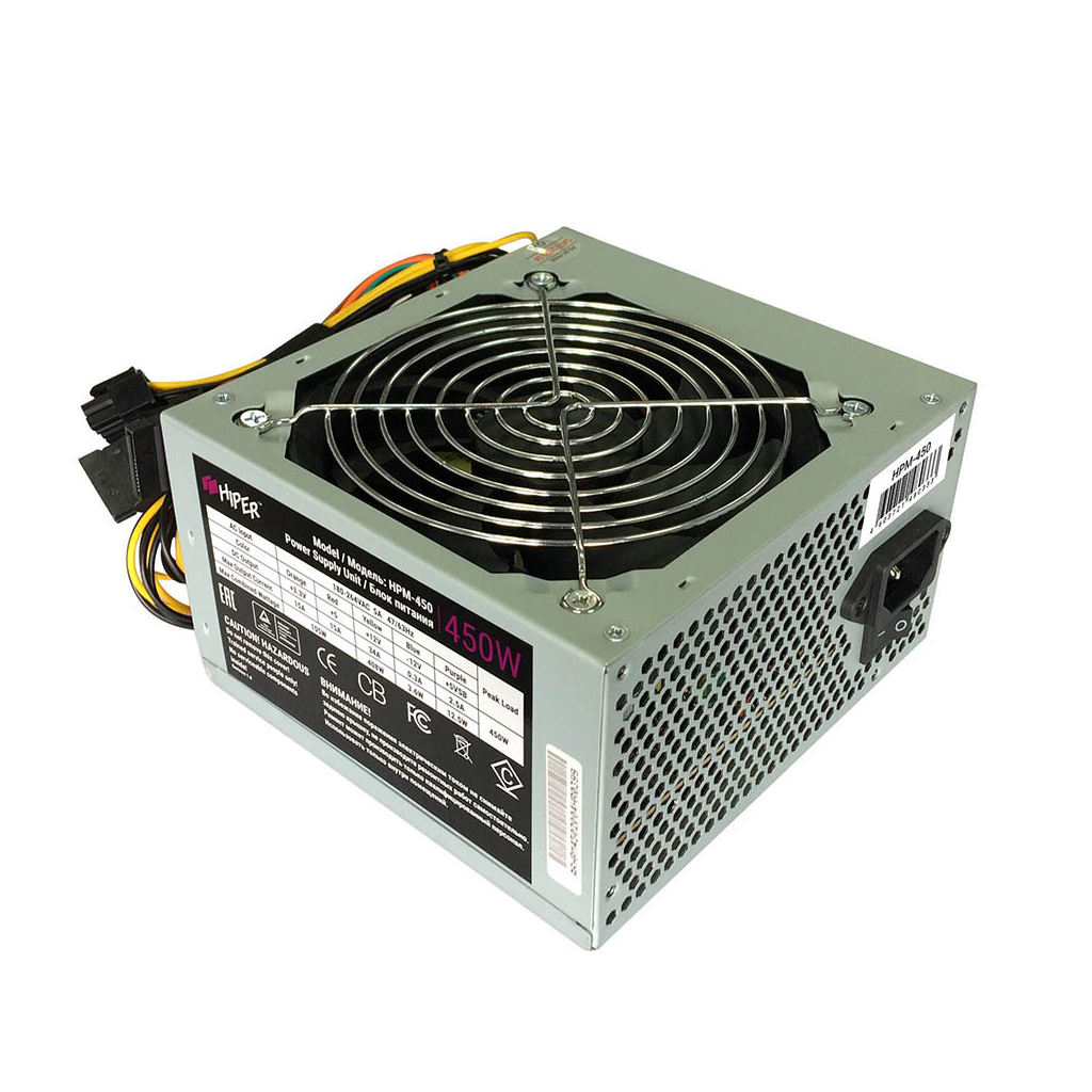 Блок питания 450Вт Hiper HPM-450 (24+4+4pin) PPFC 120mm fan 3xSATA