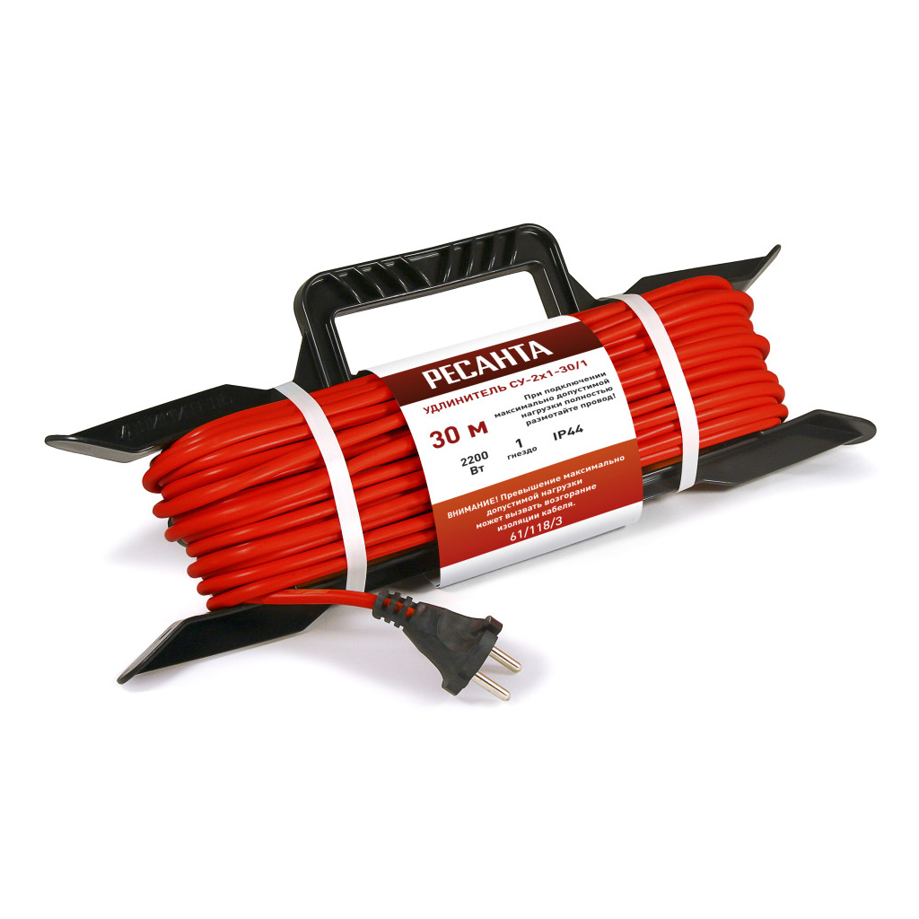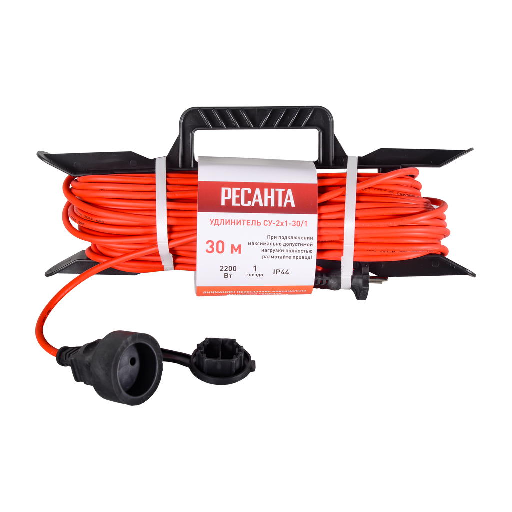 Удлинитель силовой Ресанта DСУ-2х1-30/1 на рамке 10А, 1 розетка, кабель 2х1.0 мм2 длина 30м, max нагрузка 2200Вт, IP44