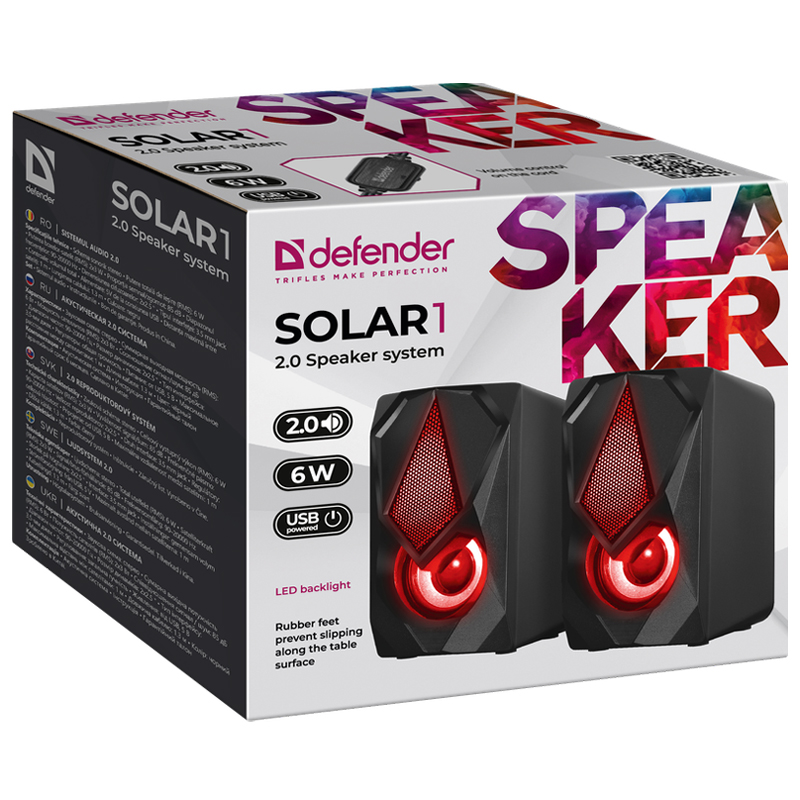 Колонки Defender 2.0 Solar 1 8Вт, подсветка, питание от USB
