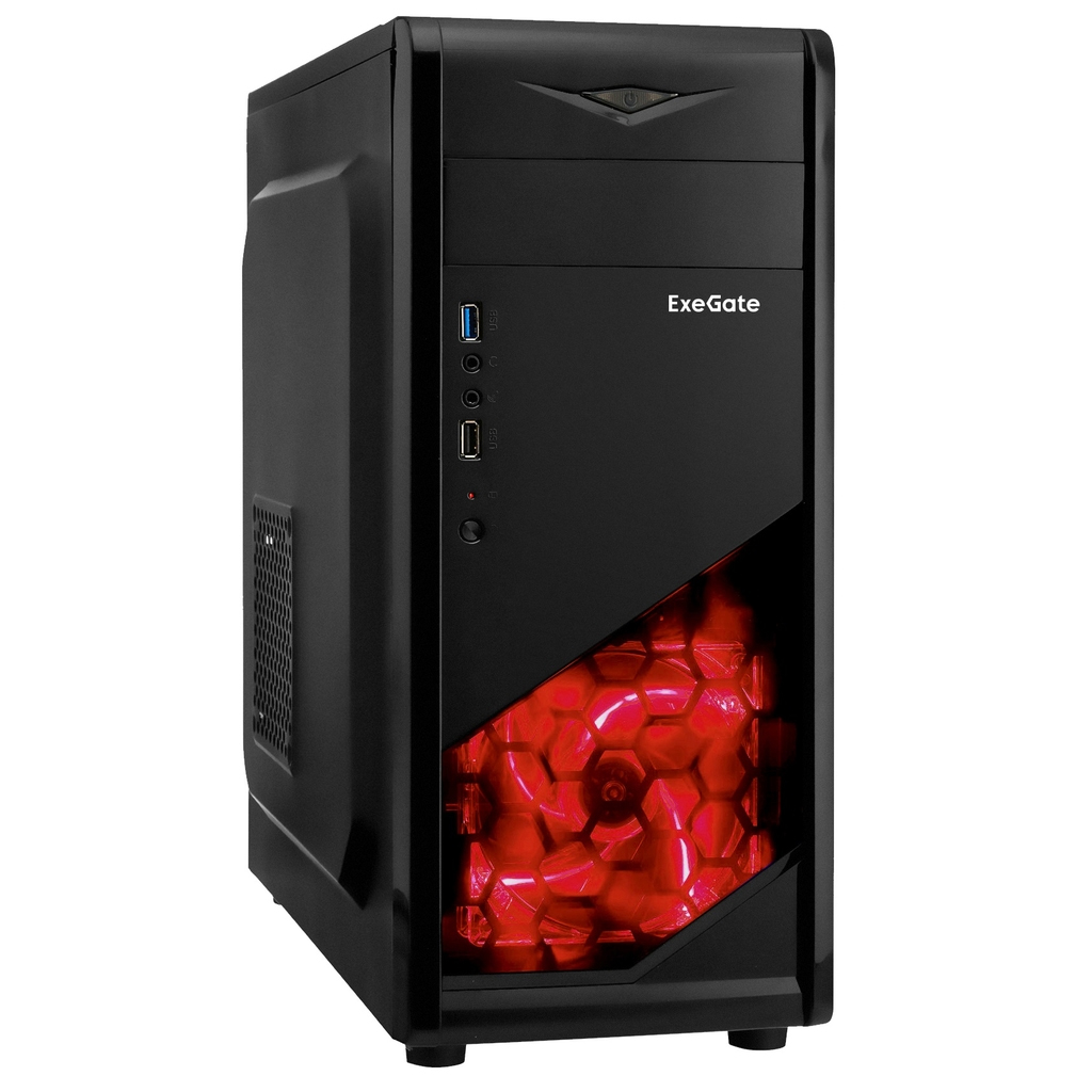 Корпус Exegate EVO-8207 (ATX, без БП, 1*USB+1*USB3.0, HD аудио, черный с красной подсветкой)