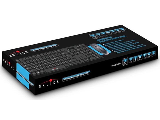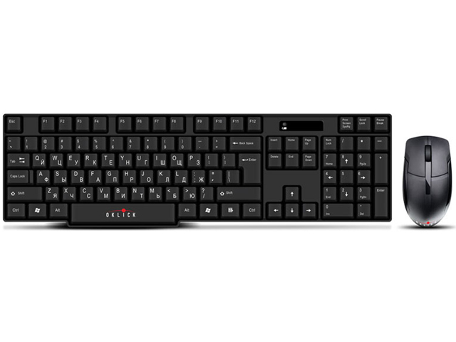 Клавиатура + мышь Oklick 225M black беспроводной набор USB, 9 мультимедийных клавиш мышь оптическая 800 dpi