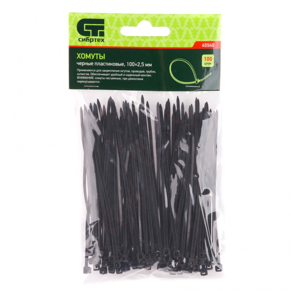 Хомуты Сибртех нейлоновые черные 2,5х100мм 100шт. 45540