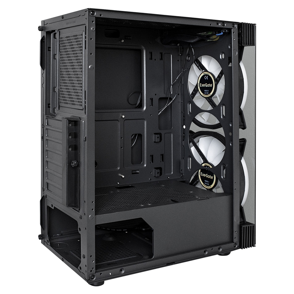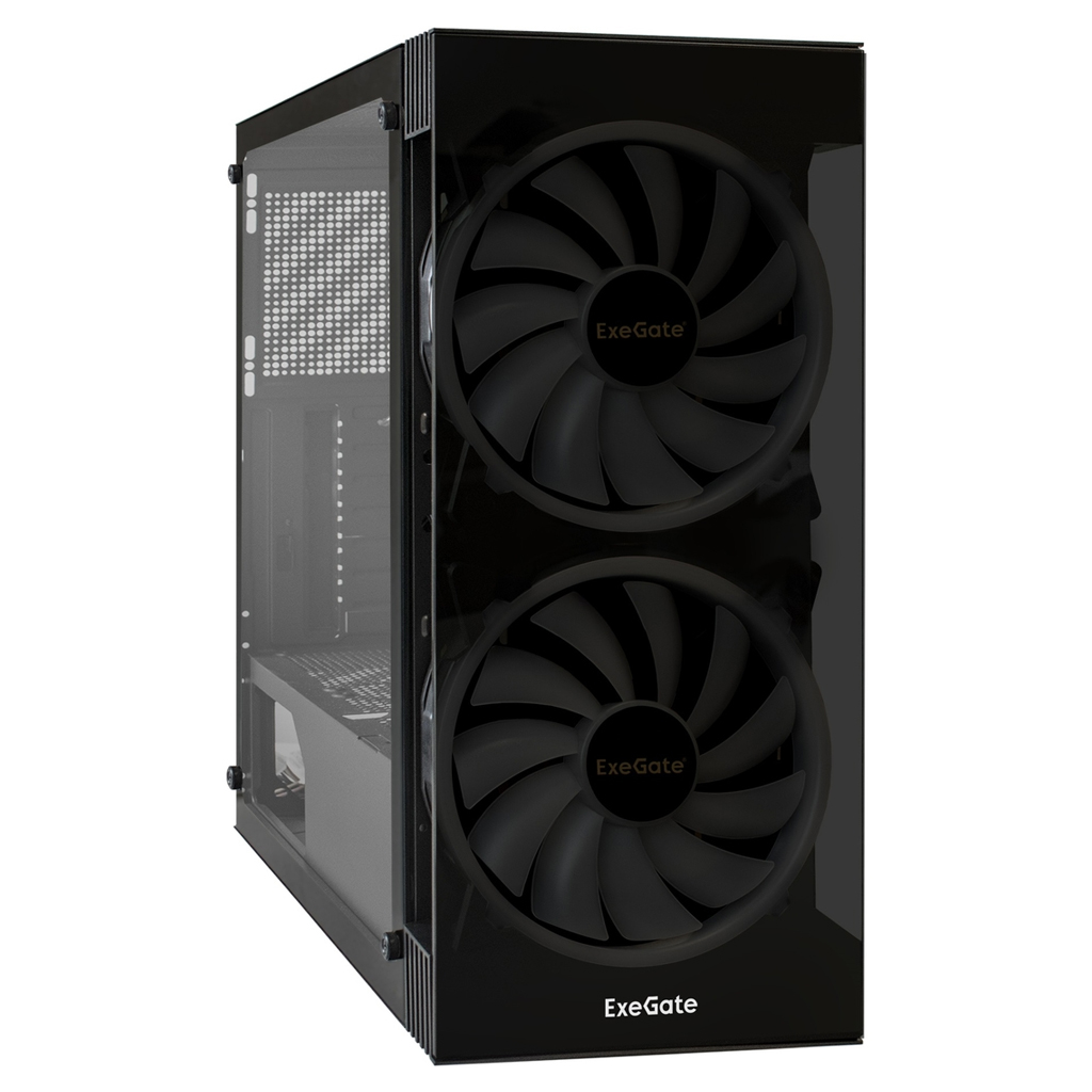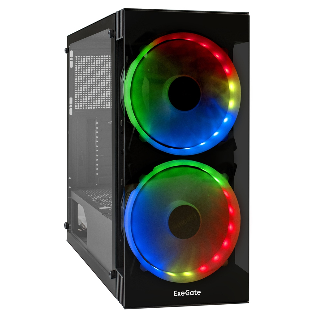 Корпус Exegate i3 MATRIX (ATX, без БП, 2*USB+1*USB3.0, HD аудио, черный, 2 вент. 18см с RGB подсветкой, пылевые фильтры, передняя и боковая панели - закаленное стекло)