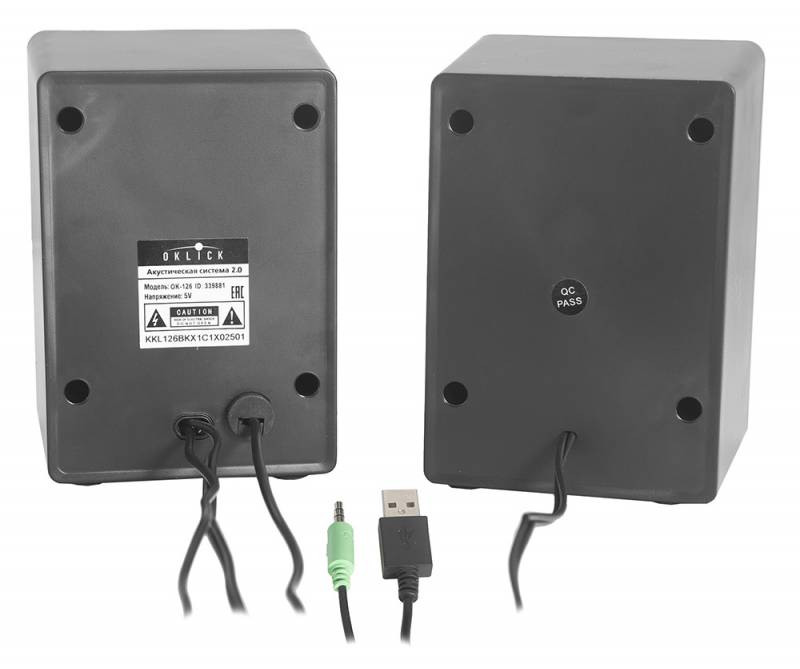 Колонки Oklick 2.0 OK-126 черный, регуляторы на передней панели