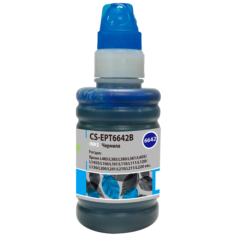 Чернила Cactus CS-EPT6642B T6642 голубой 100мл для Epson L100 L110 L120 L132 L200 L210 L222 L300 L312 L350 L355 L362 L366 L456 L550 L555 L566 L1300