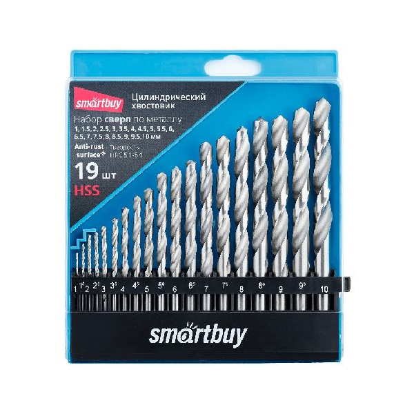 Набор сверл по металлу Smartbuy 19шт. (D1-10 мм) с шагом 0.5 мм, до HRC62, кейс
