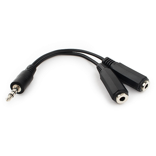 Кабель разветвитель аудио сигнала Cablexpert CCA-415-0.1M, джек3.5 папа->2х джек3.5 мама 10см, черный
