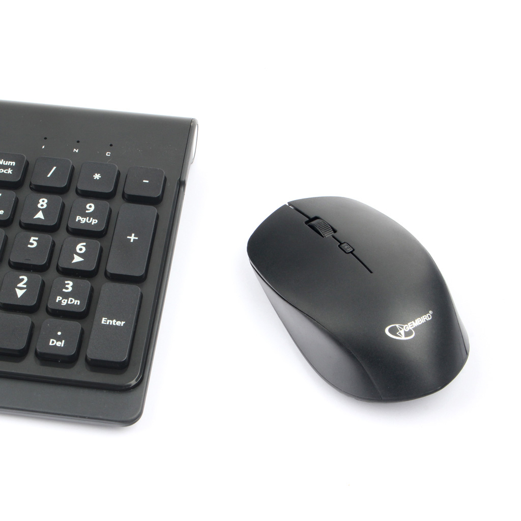 Клавиатура + мышь беспроводная Gembird KBS-7200, 2.4ГГц/10м, мини-приемник- USB, беспров. черный, полноразмерная + мышm со сменным разрешением 1600/1200/800 dpi