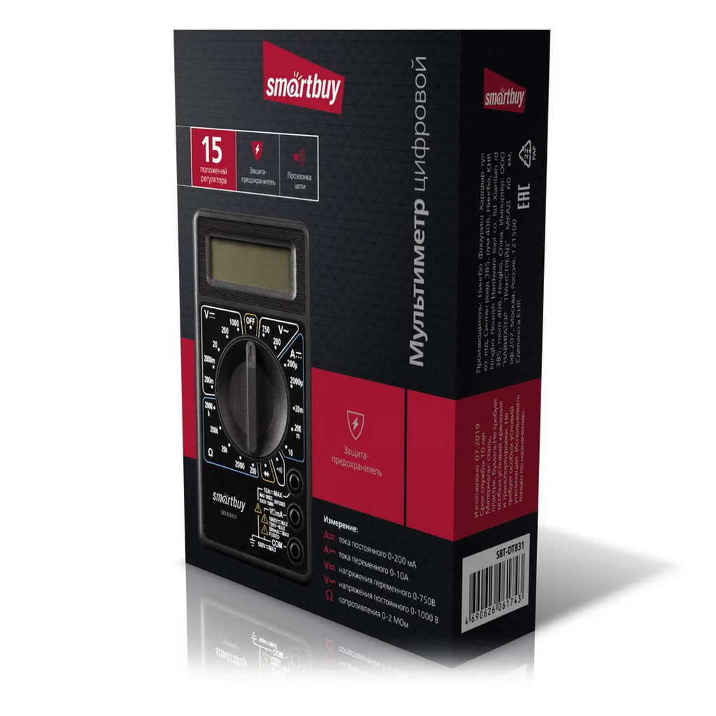 Мультиметр Smartbuy DT831, многофункц., в комплекте: набор щупов, крона, Smartbuy (SBT-DT831)