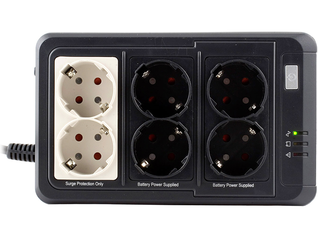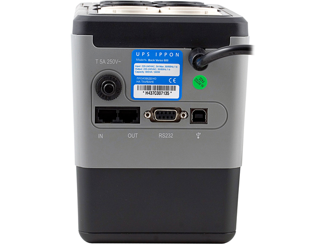 Источник БП Ippon Back Verso 600 (Мощность 600VA/300Вт, время резервного питания: 20 мин, защита: от всплесков/ шумов, цепи нагрузки, входной цепи, телефонной/сетевой линии, 4 x Schuko (c батарейной поддержкой), 2 (с защитой от всплесков напряжения))
