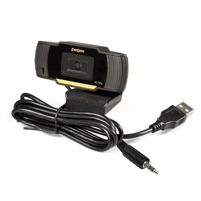 Камера WEB ExeGate GoldenEye C270 HD (матрица 1/3" 1 Мп, 1280х720, 720P, USB, микрофон с шумоподавлением, универсальное крепление, кабель 1,5 м, Win Vista/7/8/10, Mac OS, черная)